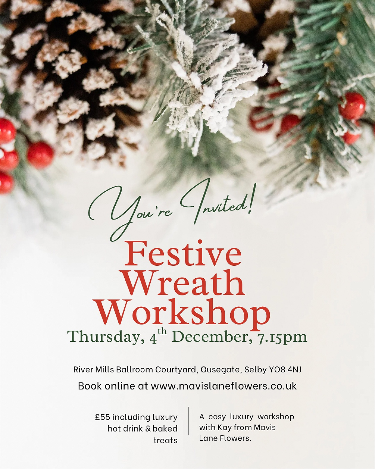 Festive Wreath Workshop, Selby 4th December 25.